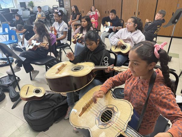 Thinking about future generations, the teachers of Mariachi Mexicanisimo teach Mariachi classes in different schools in our community, thus helping young people learn and enjoy mariachi music and learn to play and sing with traditional instruments.